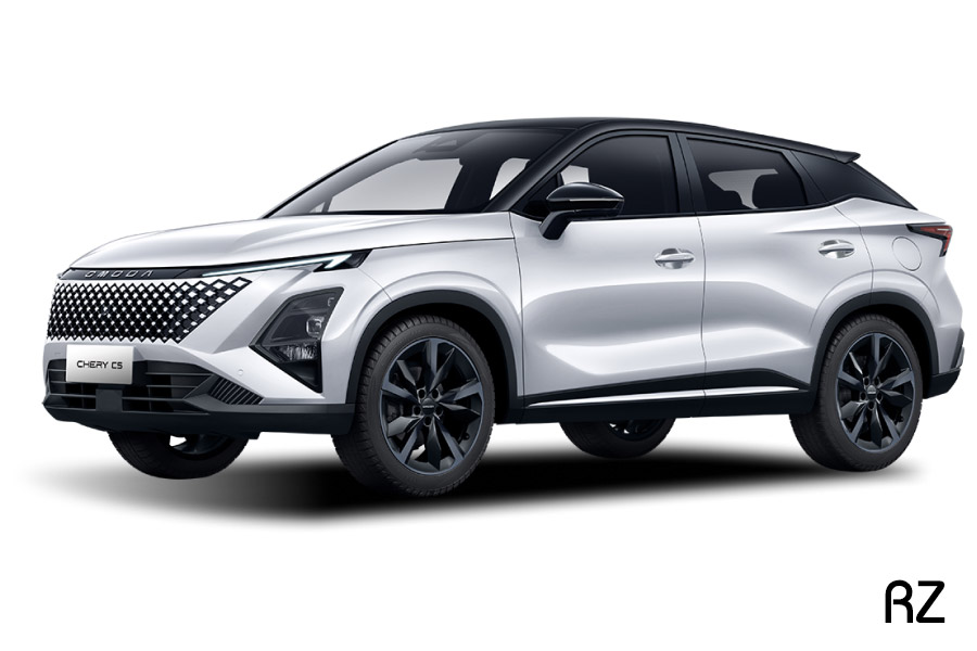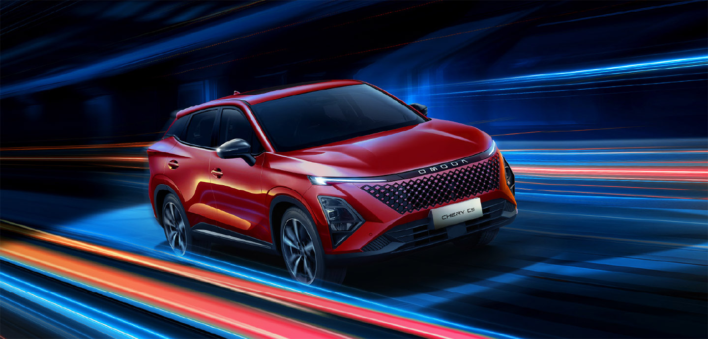 Chery Omoda C5 mengusung bahasa desain avant-garde dengan grille tanpa bingkai, lampu utama atau headlamp menyipit di bagian atas, serta tarikan garis yang membuat pencahayaan terhubung. Siluet coupe dengan atap melandai ke belakang memberikan kesan sporty namun tetap elegan.